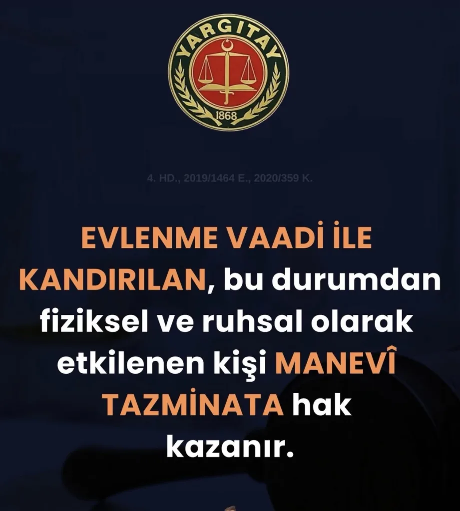 evlenme vaadiyle kandırılan bu durumdan fiziksel ve ruhsal olarak etkilenen kişi manevi tazminat hak kazanır